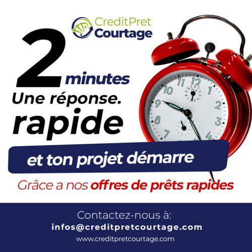 Ne laissez pas les dépenses imprévues vous freiner ! La vie peut être imprévisible : votre prêt 24 h peut vous aider dans toutes les situations : réparations, factures ou réalisation de vos rêves. N'attendez plus ! Obtenez un soutien financier dès aujourd'hui : Offre : https://www.creditpretcourtage.com/fr Demande en ligne : https://www.creditpretcourtage.com/fr/demandedepret