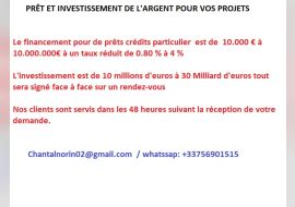 CAMPAGNE DE FINANCEMENT PRÊT ENTRE PARTICULIER chantalnorin02@gmail.com / whatssap: +33756901515