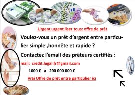 Belgique : Offre de prêt entre particuliers Très sérieux et rapide en 72 Heures ( credit.legal.fr@gmail.com ) Le seul mail pour nous joindre : credit.legal.fr@gmail.com...